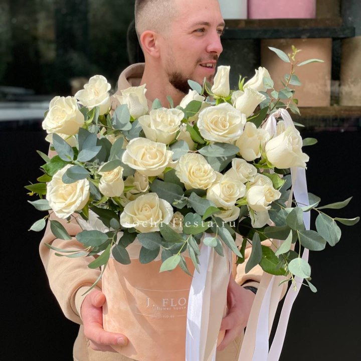 Цилиндр из белых роз