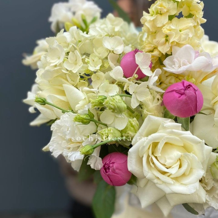 Букет роз, гортензии, гербер