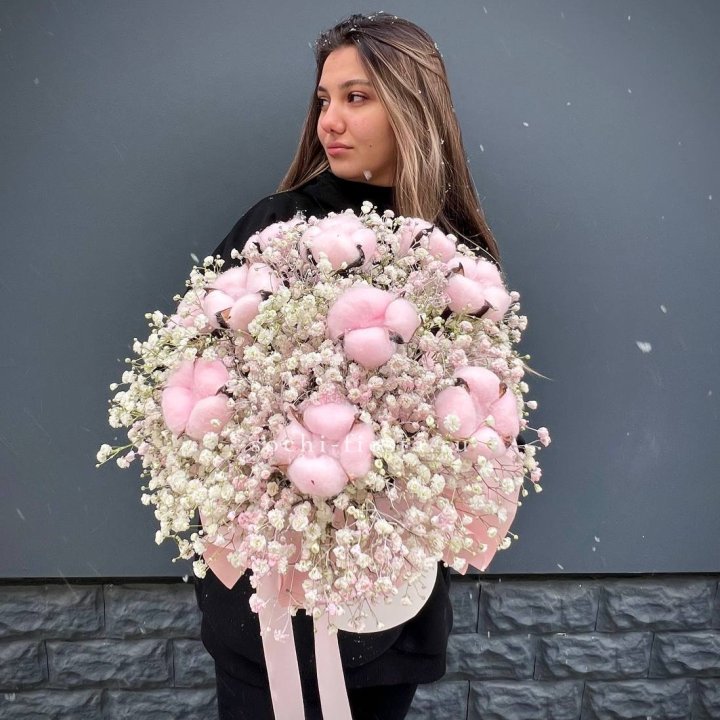 Гипсофилы с хлопком в шляпной коробке