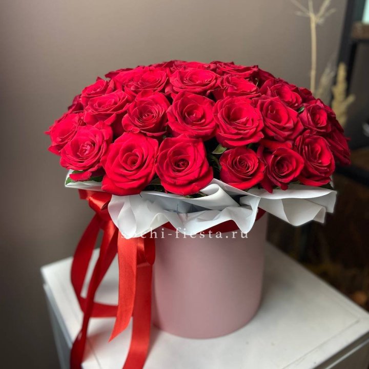 39 красных и белых роз в цилиндре