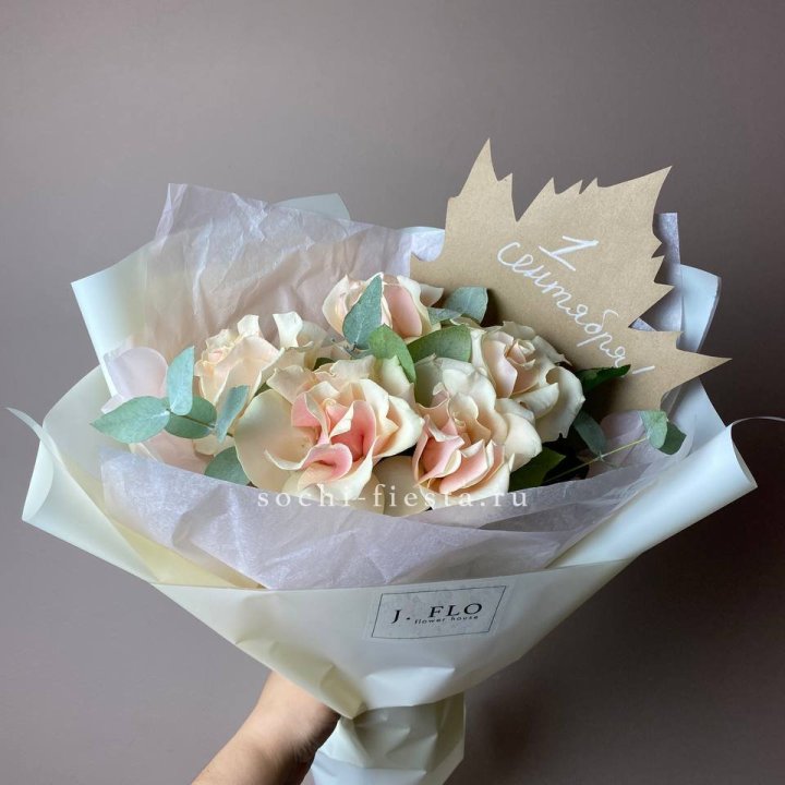 Букет кремовых роз к дню знаний