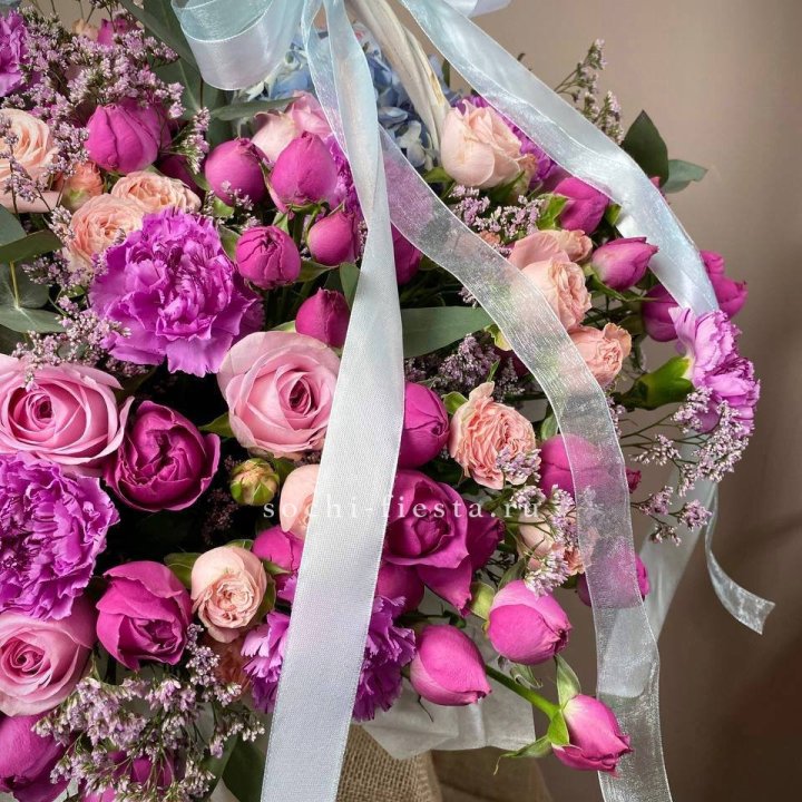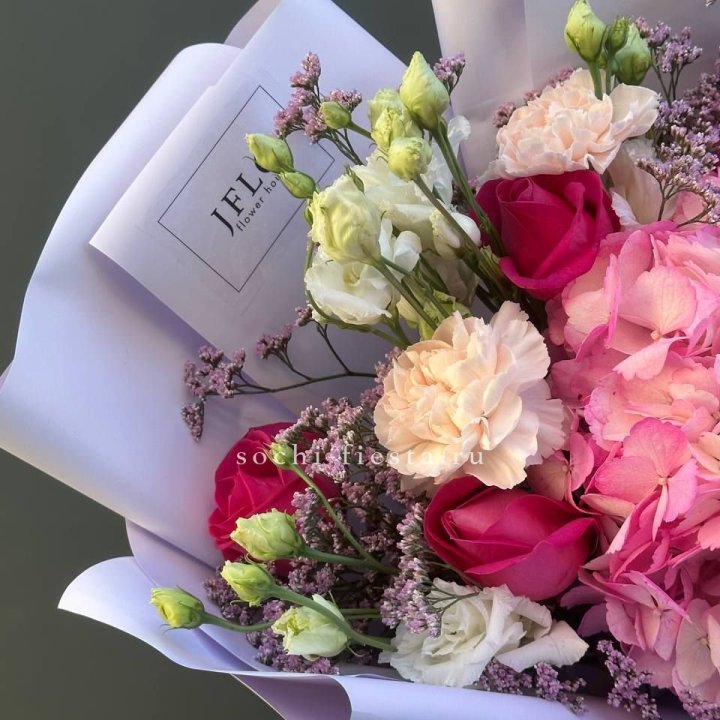 Букет гортензии и кустовых роз