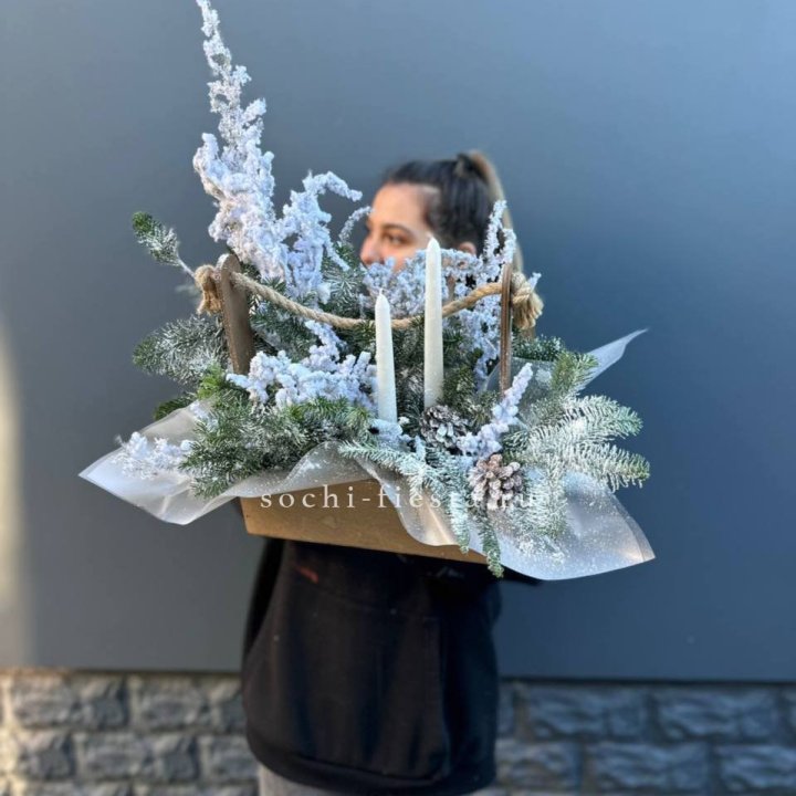 Новогодняя корзина с цветами