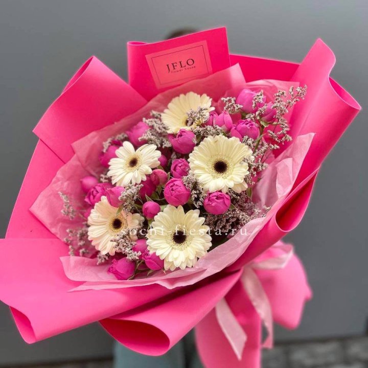 Букет гербер и мисти бабблс