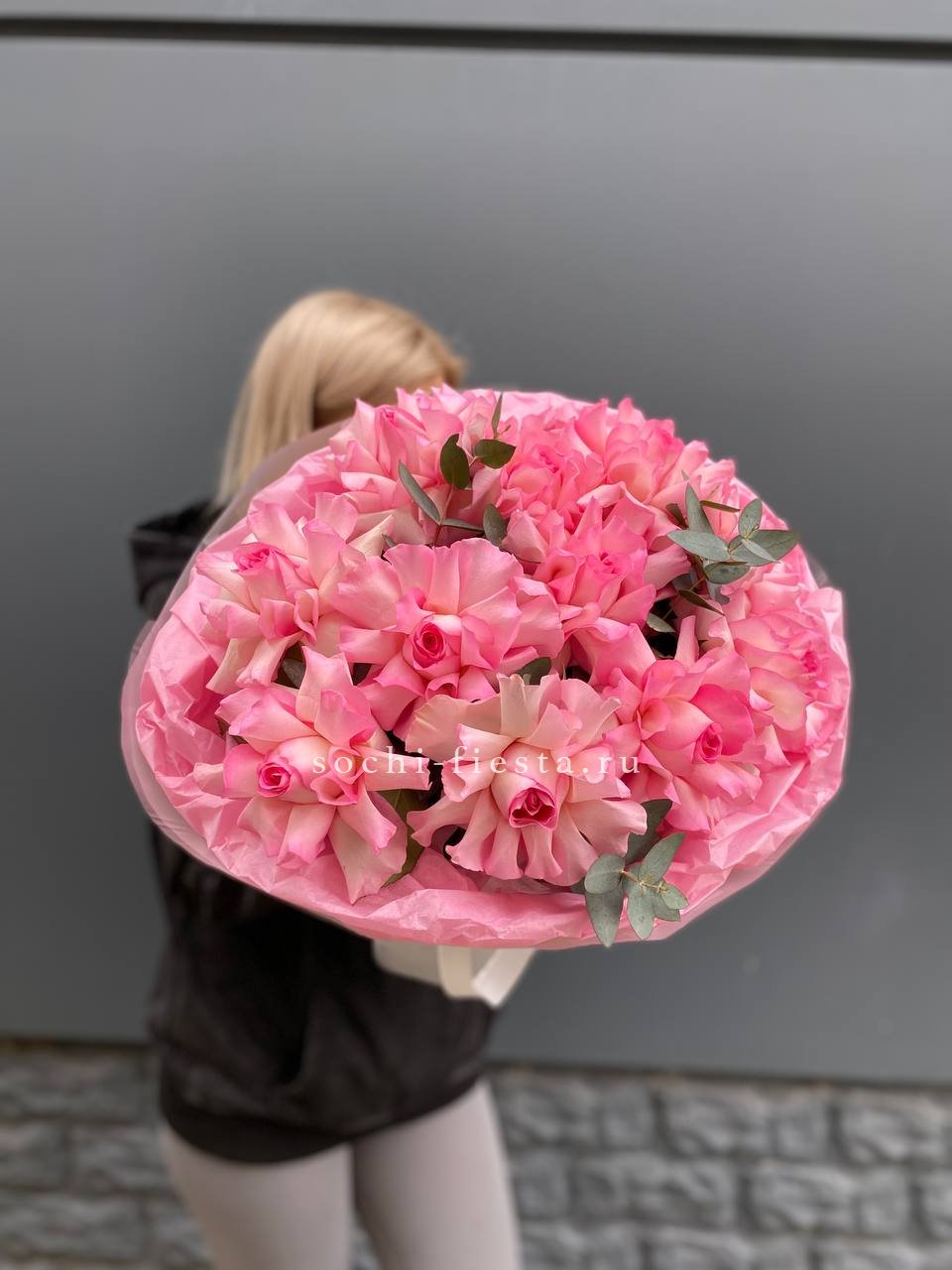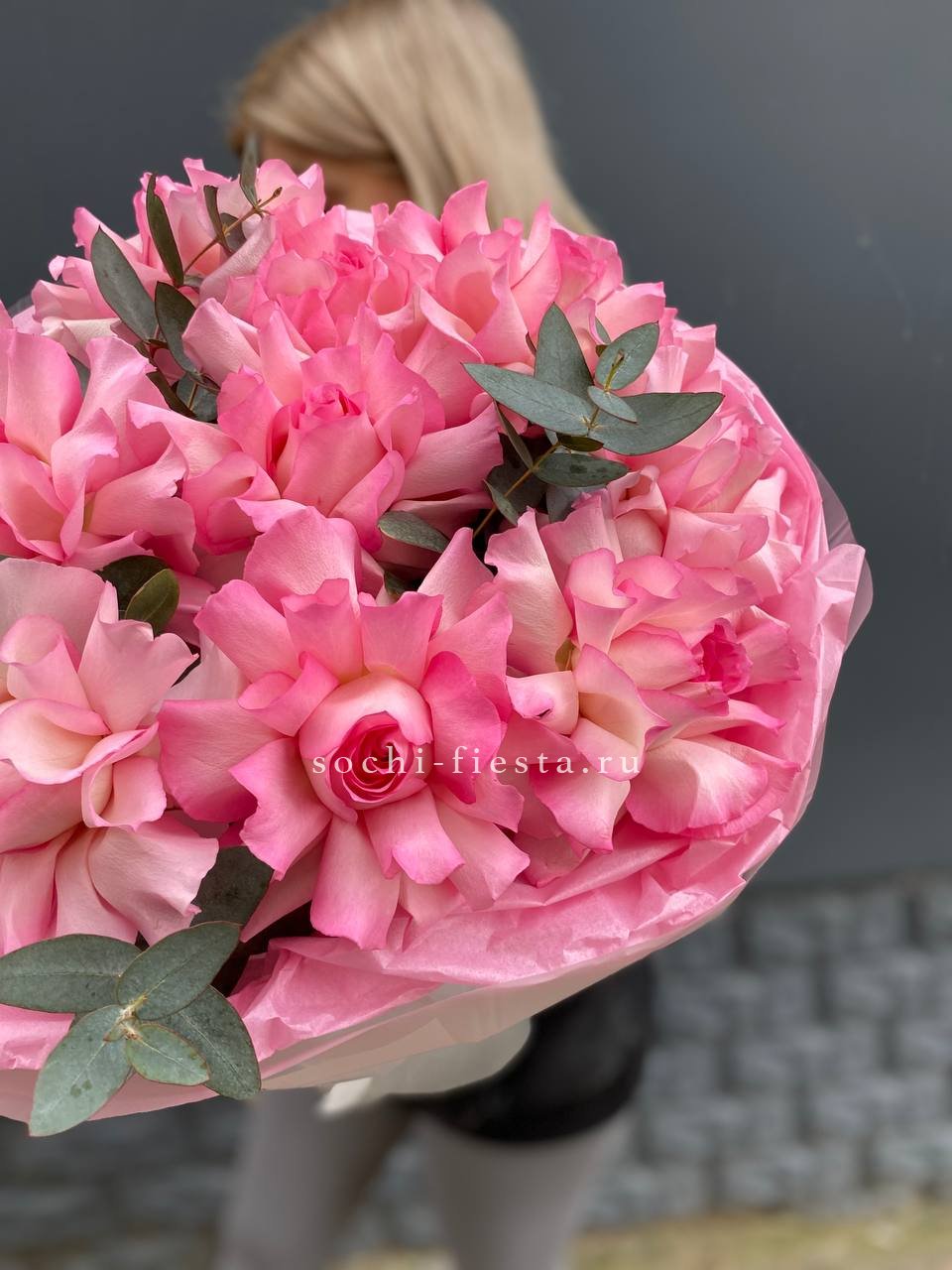 французские розовые розы в оформлении с эвкалиптом  На фото 11.