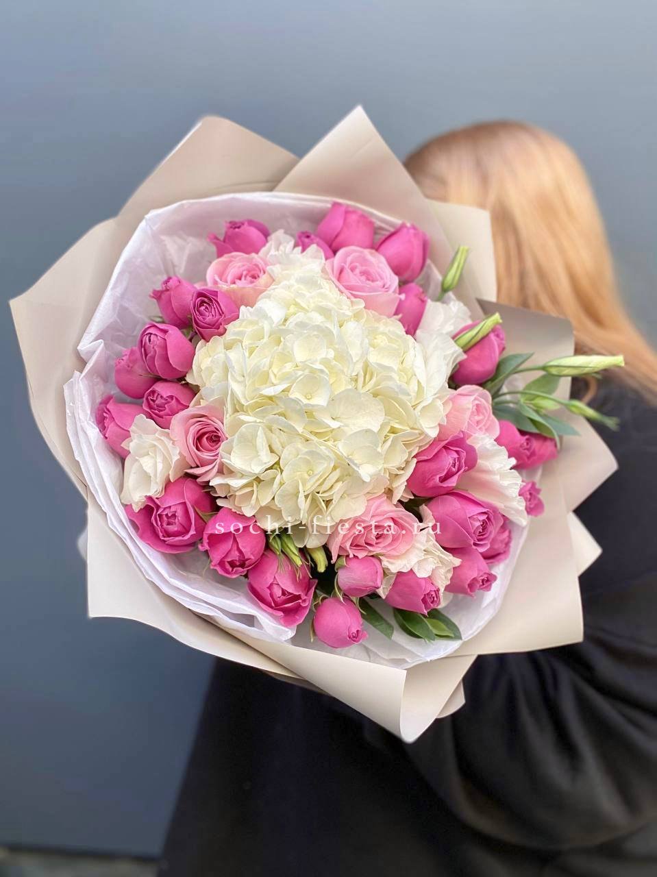 гортензия - 5 шт., лента, дизайнерская упаковка.