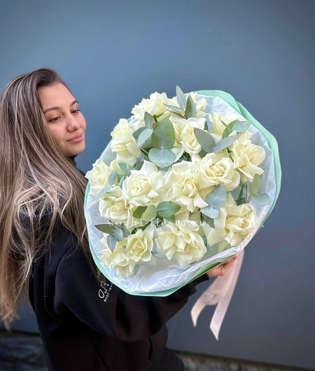 вывернутые розы, эвкалипт, лента, авторская упаковка.