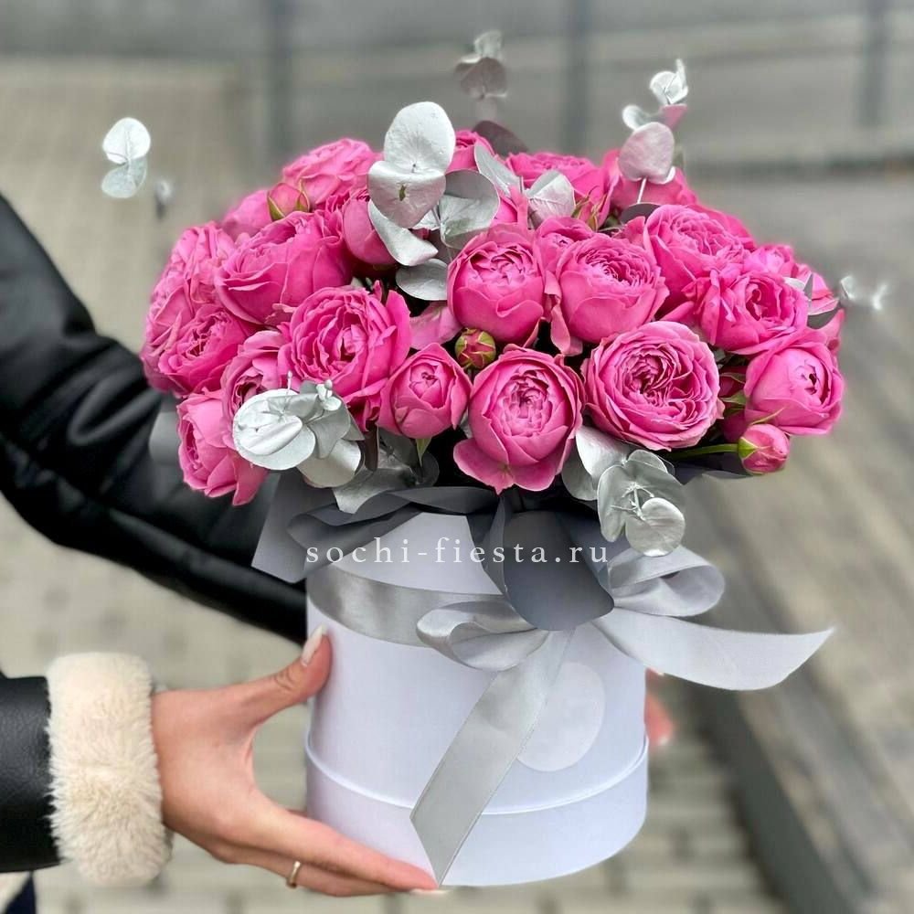 диантус, розы, бомбастик, эвкалипт, упаковка.
