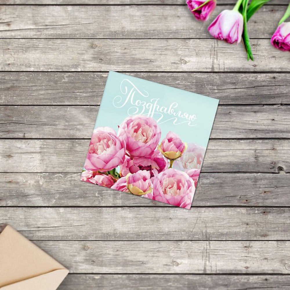 Дополните букет открыткой с индивидуальным оформлением под ваш повод. Вы можете выбрать тематику дизайна и получить фото перед отправлением. Завершающий штрих для вашего послания.