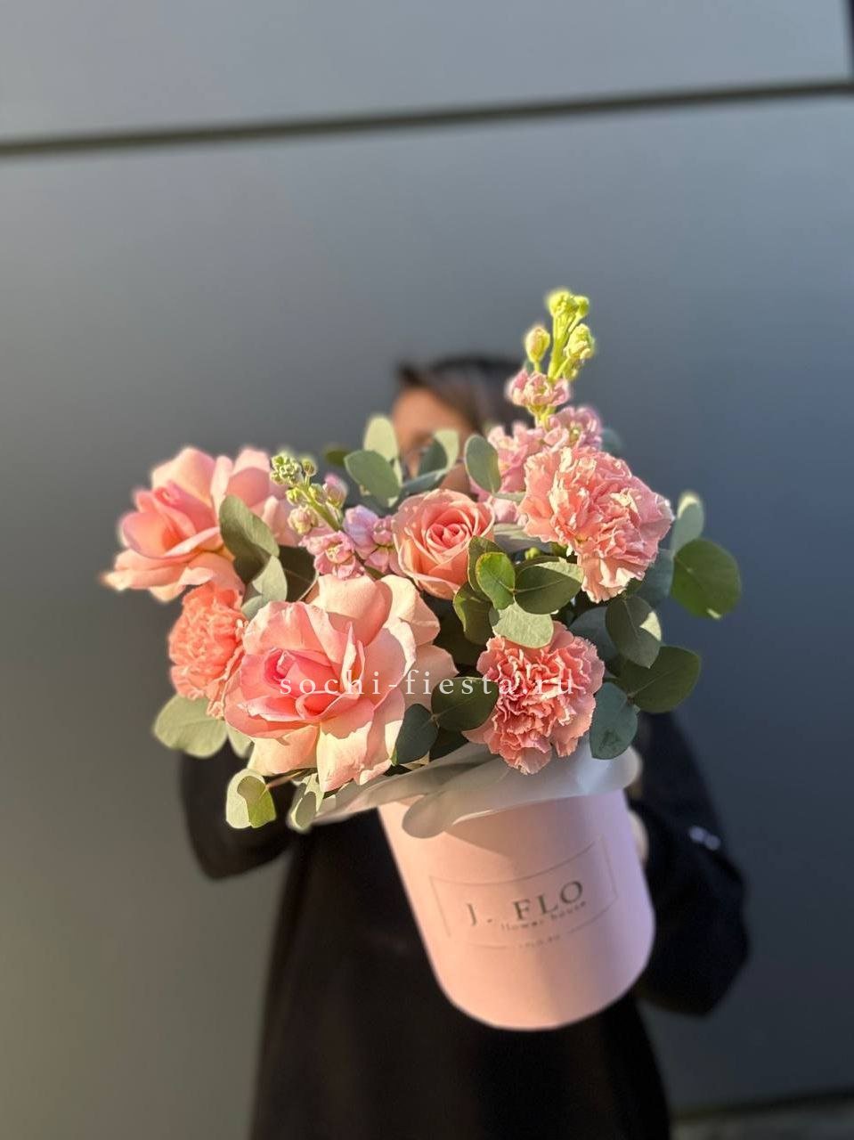 кустовая роза, лилия, диантус, лотос, эвкалипт, бокс 13.