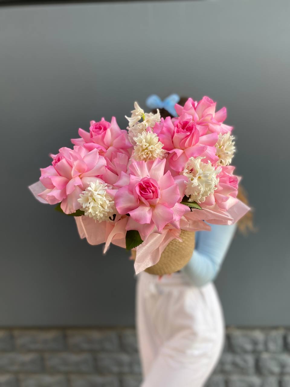 Живые гиацинты и свежие розы собраны в компактную композицию с природной текстурой джута. Корневая система сохранена, что позволяет цветам радовать дольше обычного букета. Готовое решение для дома или рабочего пространства.