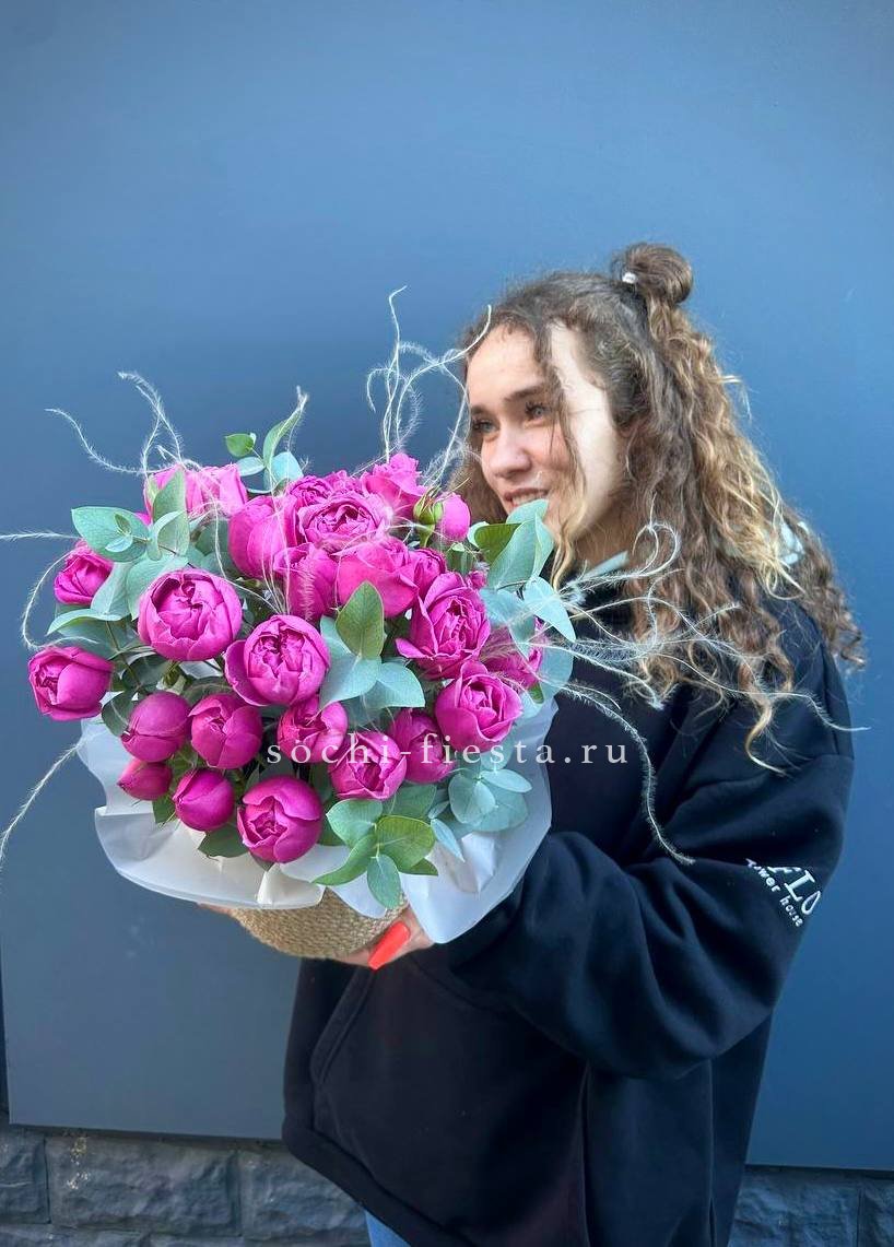 Для заказа товара "Пионовидные розы в джутовом кашпо " с доставкой в Санкт-Петербурге нажмите в корзину