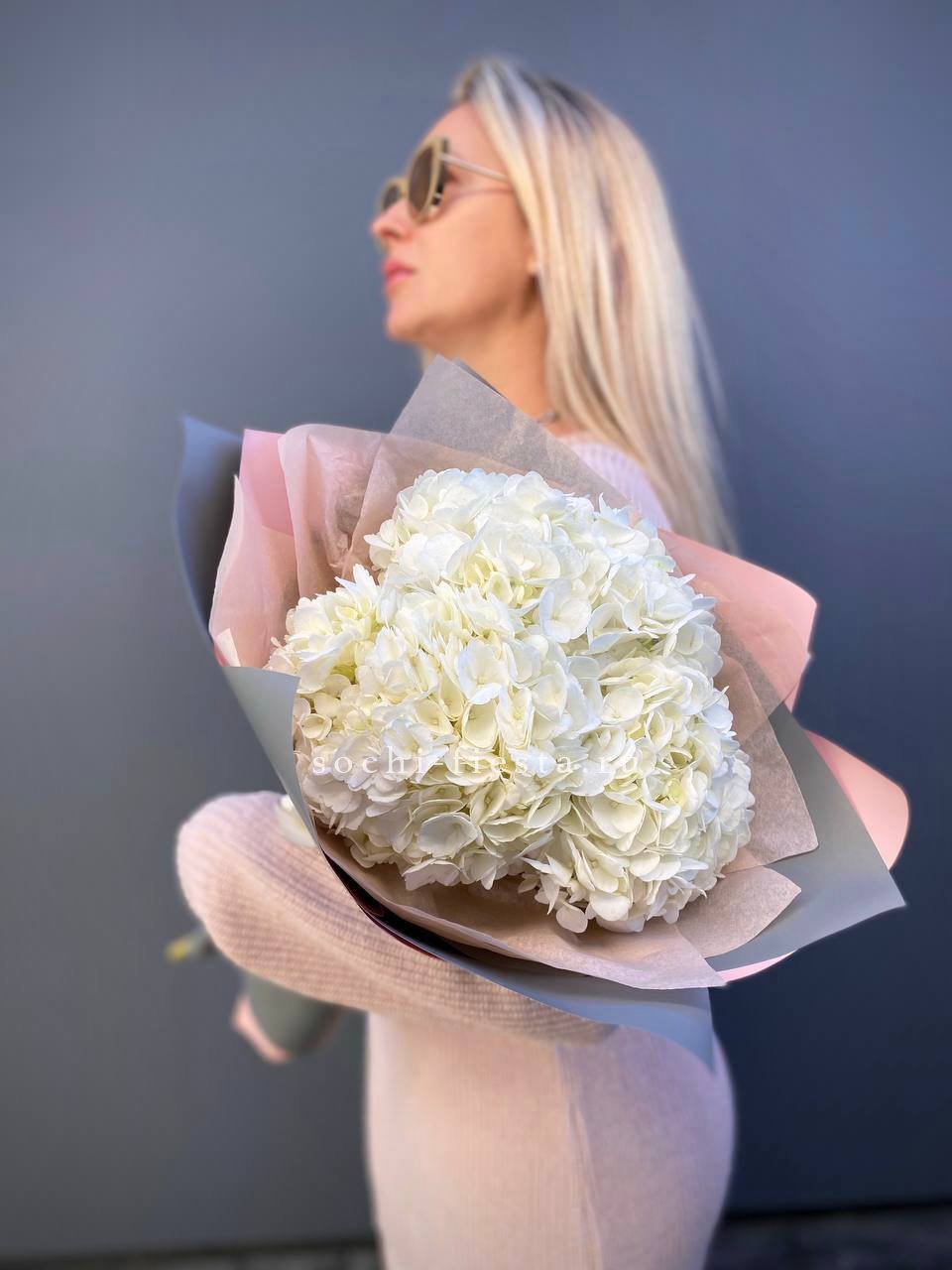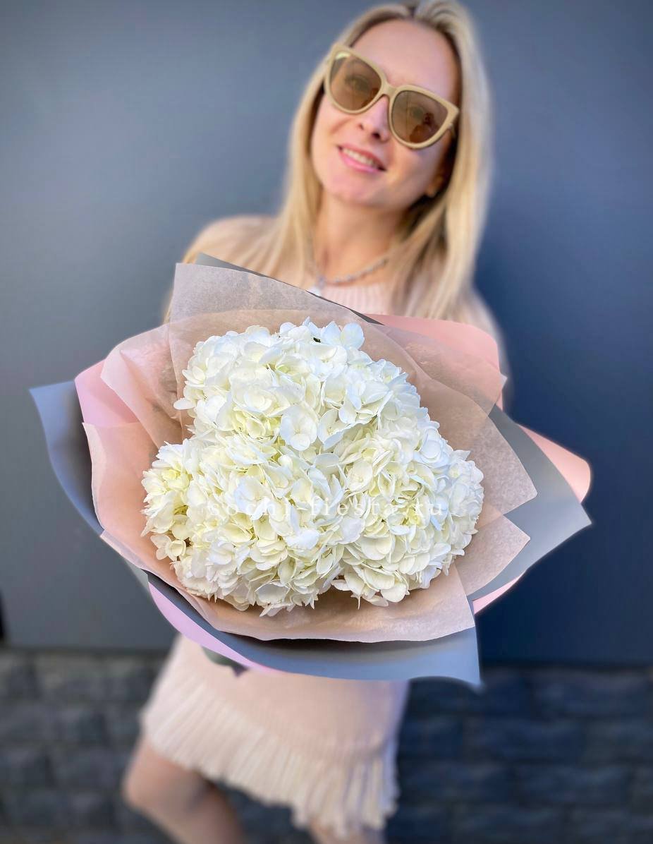 Для заказа товара "Букет из трёх белых гортензий" с доставкой в Санкт-Петербурге нажмите в корзину