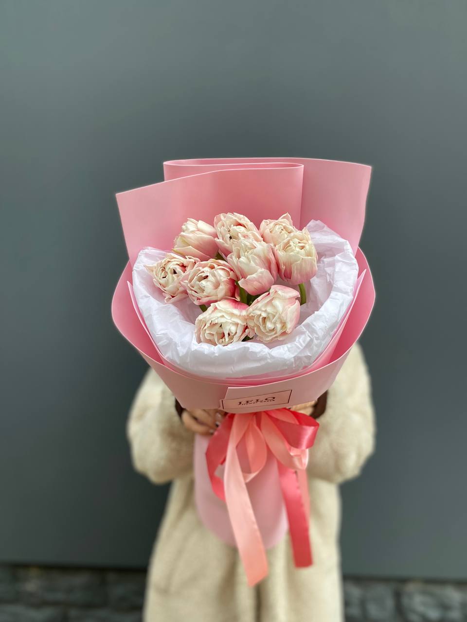 нежные тюльпаны в розовом оформлении.