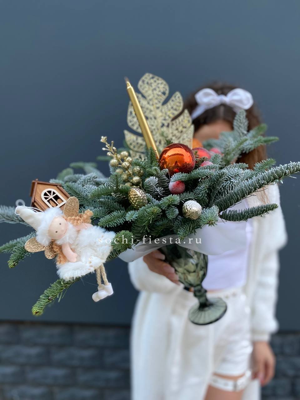 нобилис, бокал, оазис, свечи, новогодние игрушки, декор ВНИМАНИЕ! Готовая композиция (декор) может иметь незначительные внешние отличия от примера на фотографии.