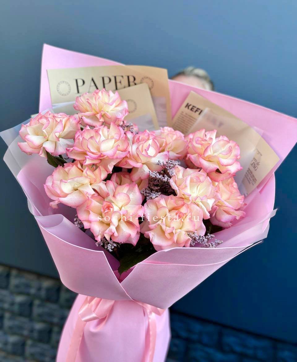 Мы работаем только со свежими цветами — букеты радуют от 7 до 14 дней и дольше при правильном уходе.
