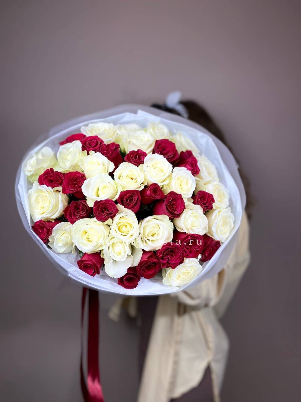 Для заказа товара "Букет из красных белых 45 роз" с доставкой в Санкт-Петербурге нажмите в корзину