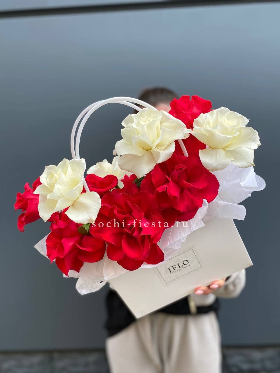 Двадцать пять белых бутонов раскрываются слоями и создают воздушную фактуру с глубиной. Голландские розы удерживают свежесть и сохраняют структуру долгое время.