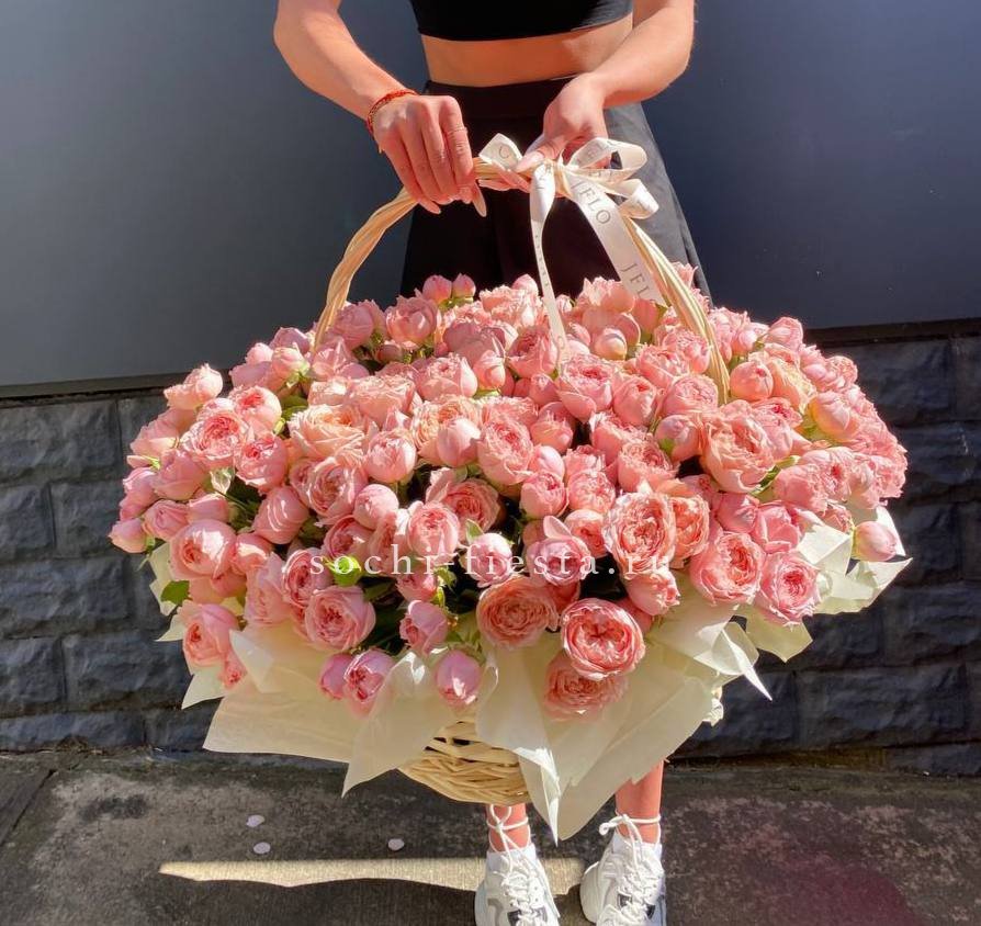 Корзина из пионовидных роз