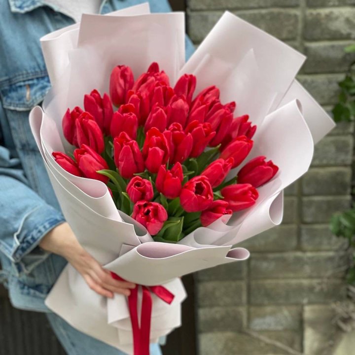 35 красных тюльпанов